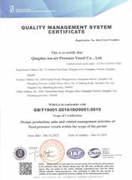 青島??諌毫θ萜饔邢薰境闪⒂?996年,目前是江北領先的中低壓氣體儲存類容器廠家,作為國際知名空壓機廠家的戰(zhàn)略合作伙伴,憑借優(yōu)異的品控體系和完善的服務體系,產(chǎn)品遠銷世界各地,并且得到客戶的高度好評。“??铡迸茐毫θ萜饕褟V泛應用于國內(nèi)各大核電站、航天、生物研究、醫(yī)療、制藥、食品和國外各大電廠等領域,其中不銹鋼壓力容器的制造工藝技術已處于業(yè)內(nèi)領先水平。